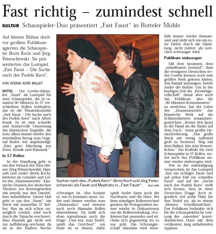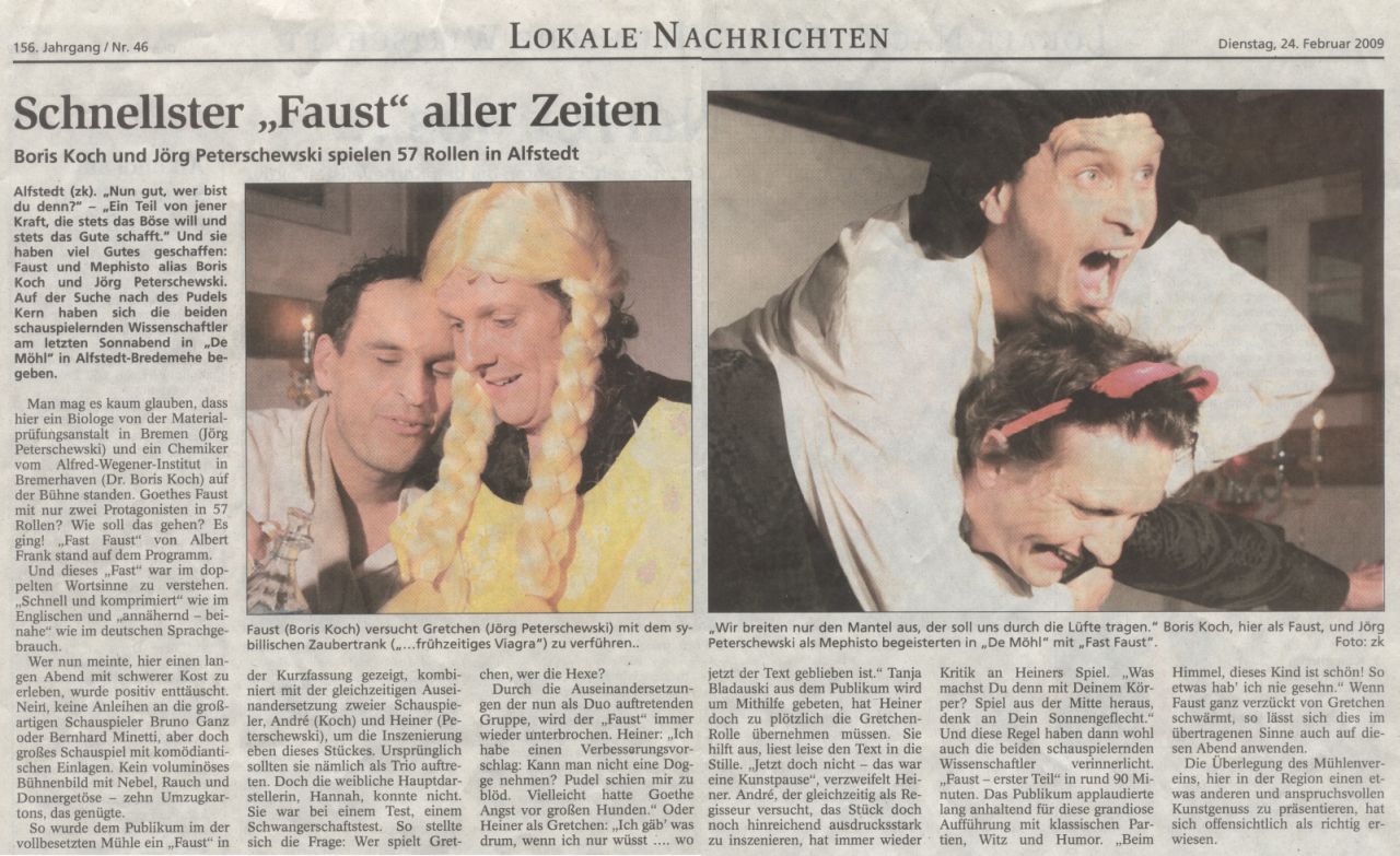"Goethes Faust in Häppchen serviert" (Nordwest Zeitung, 09.02.2009)